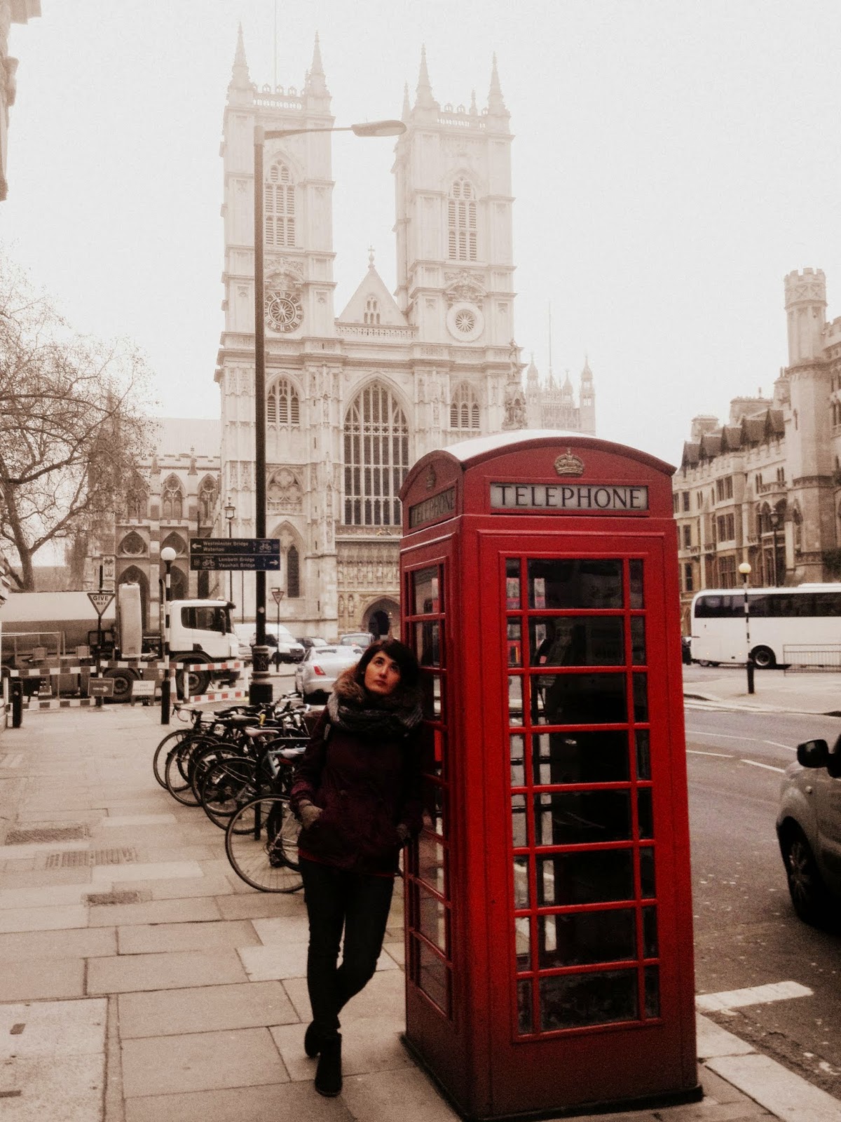 Okrążyłyśmy Houses of Parliament i dotarłyśmy do opactwa Westminster. To kolejna piękna budowla. Zamierzałyśmy obejrzeć ją z balkonu kościoła metodystycznego naprzeciwko, ale nie udało się nam wejść do środka. Pozostało nam jedynie robienie zdjęć z perspektywy budki telefonicznej, bo tylko tak można było ująć katedrę w całości.