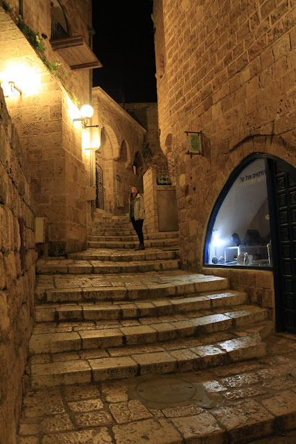 Jest już straszliwie późno, ale cały czas jest ciepło. Kierujemy się wzdłuż wybrzeża na północ, do Hajfy, ale po drodze zahaczamy o port w Jaffie. To miejsce znane z kilku biblijnych historii: ucieczki Jonasza do Tarszyszu, pobytu Piotra w domu Szymona Garbarza i widzenia z Korneliuszem. Uświadamianie sobie tych wszystkich historii, które odbywały się w właśnie odwiedzanych miejscach jest niesamowite. Kiedy wchodzimy w labirynt małych uliczek prowadzących do portu, niezliczonych schodów i latarni, dociera do mnie, że naprawdę jestem w Izraelu, w orientalnym kraju. Nie ma wątpliwości, że to zupełnie inny kontynent.