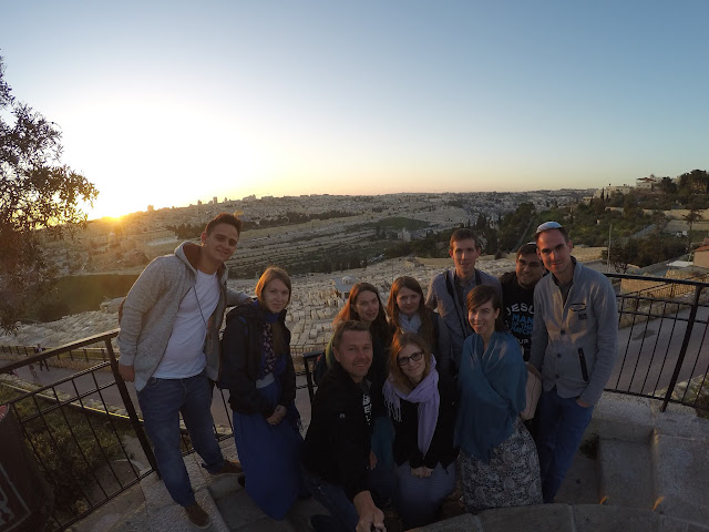 O Górze Oliwnej wspomnę jeszcze kilkakrotnie, bo odwiedzaliśmy ją często podczas naszego pobytu. Jest to bez wątpienia miejsce autentyczne, bo góra nie zmieniła swego położenia, a zatem Jezus na pewno na niej był. Tutaj rozpoczęliśmy dzień szabatu, wpatrując się w zachodzące słońce nad Jerozolimą.