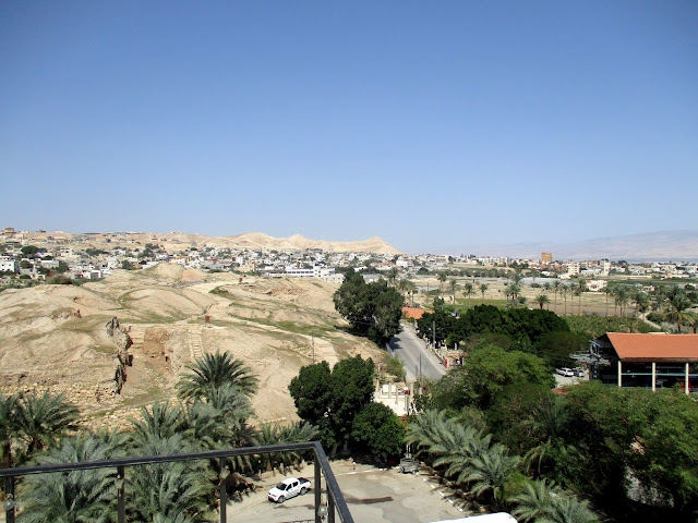 Ruiny starożytnego Jerycho oglądaliśmy z platformy widokowej budynku nieopodal. Miejsce to po zburzeniu za czasów Jozuego zostało przeklęte i nigdy nie miało być odbudowane, a jeśli ktoś się tego podjął, to fundamenty miał postawić na swoim pierworodnym synu. Zapowiedź ta spełniła się.