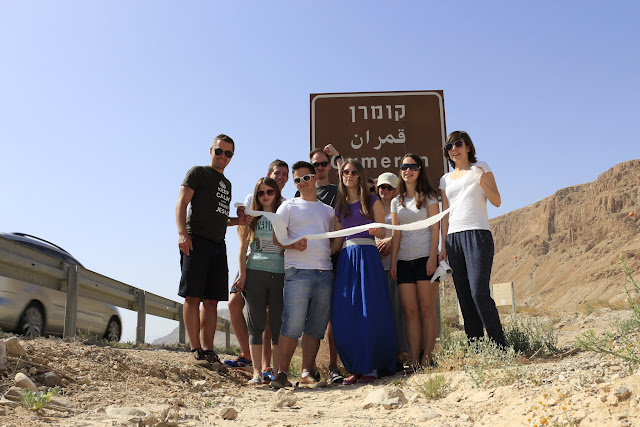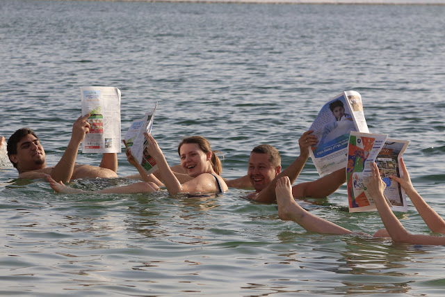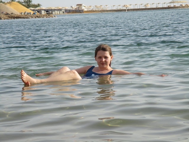 Morze Martwe jest położone w głębokiej depresji, temperatura jest tu o 10 stopni wyższa niż w Jerozolimie, która leży na wzgórzach. Przypominam: mamy marzec, a my pływamy. Jak do tej pory moje rekordowe osiągnięcie 🙂