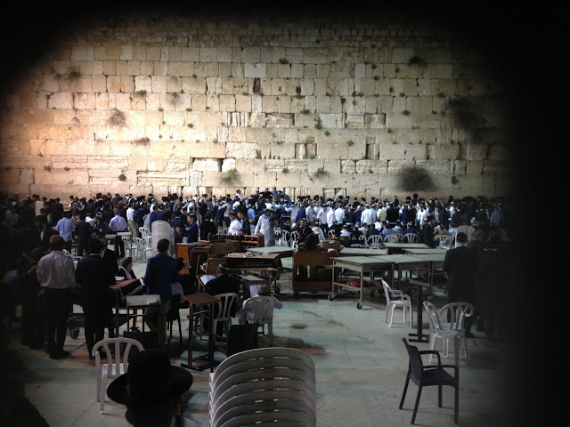Pod Ścianą Płaczu panuje niezwykle radosna atmosfera. Grupy mężczyzn ustawiają się w kółku, tańczą i śpiewają, niczym kibice na stadionie po zwycięskim meczu. Ubrani są w czarne szaty, mają u pasa sznurki modlitewne, a od ściany wychodzą tyłem. Potem długo jeszcze tańczą i śpiewają na placu. Żaden filmik nie odda tego, trzeba przyjechać i zobaczyć!