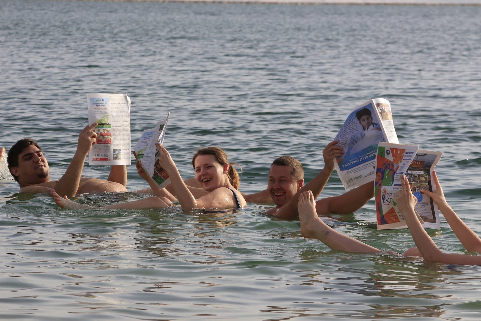 Zasolenie wody jest tak duże, że nie da się zanurkować ani utonąć. Leżąc na plecach mamy cały czas nogi uniesione, jakbyśmy siedzieli na wodzie, przekręcając się na brzuch zachowujemy się jak dryfujący korek. Śmieszne uczucie, ale ma to pewne zalety: pomaga nauczyć się pływać bez strachu. Jedyne na co trzeba uważać, to na to, żeby woda nie dostała się do oczu, bo może wyrządzić poważne szkody. Jest też obrzydliwie gorzka w smaku i zostawia na skórze tłustą emulsję. Kąpiel w Morzu Martwym jest lecznicza dla skóry, przyspiesza gojenie się ran (kiedy wytrzymamy pierwszy szok wypalania soli). Po wyjściu z wody koniecznie trzeba umyć się z soli.