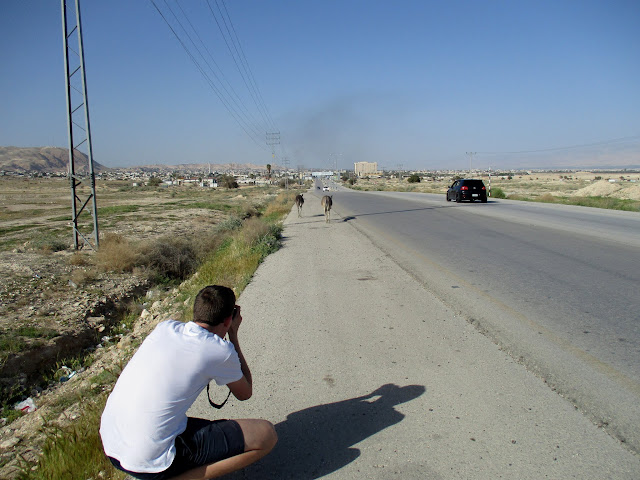 Droga z Jerozolimy do Jerycha to miejsce akcji przypowieści o miłosiernym Samarytaninie. A na czym jeździł Samarytanin? Na osiołku 🙂 spotkaliśmy dwa osiołki idące wzdłuż drogi, ale nie przejęły się wcale naszą obecnością.
