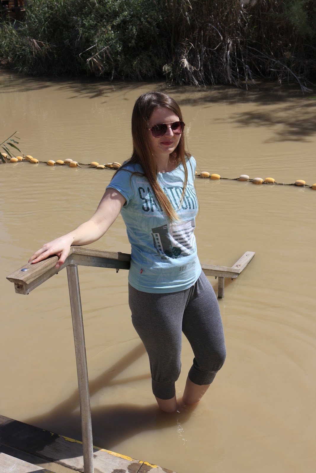 Do Morza Martwego wpada Jordan i to on jest kolejnym punktem naszej wyprawy. Udajemy się do miejsca, gdzie Jezus przyjął chrzest, a także tam, gdzie Izraelici wkroczyli do ziemi obiecanej. Znaczenie tych obu wydarzeń wskazuje nam, że aby wejść do obiecanej przez Boga krainy, trzeba się wejść z wiarą do wody i dać się zanurzyć. Ja takie zanurzenie (chrzest) mam już za sobą, więc w Jordanie zamoczyłam tylko stopy.