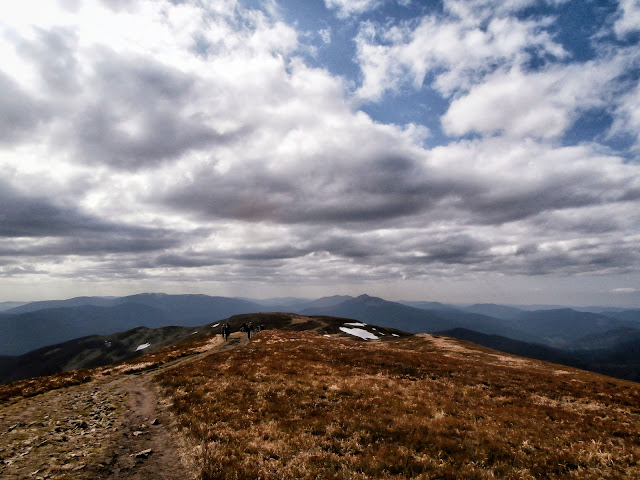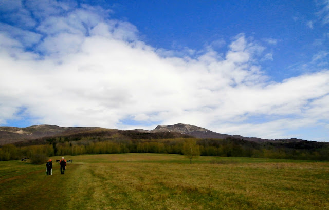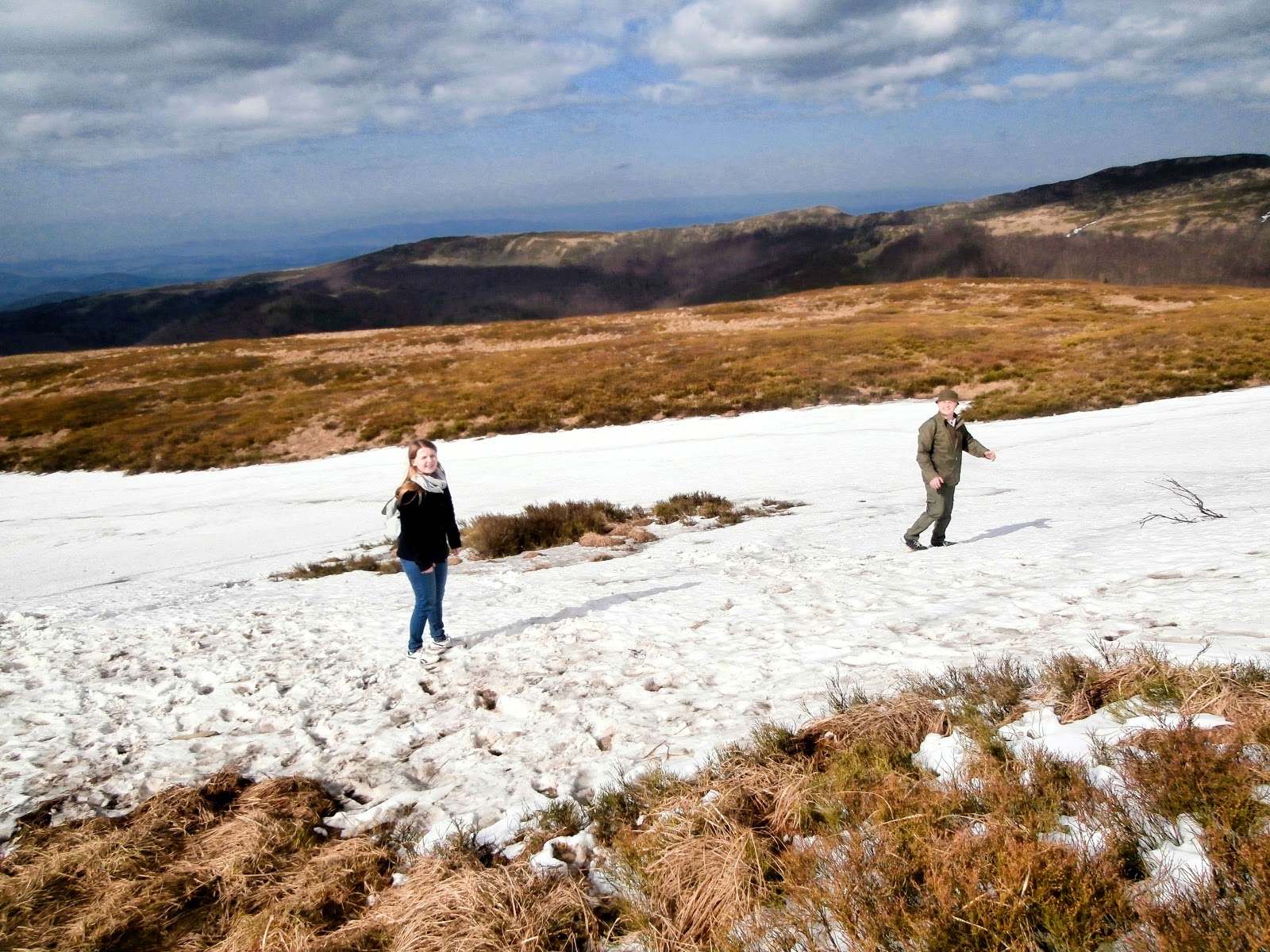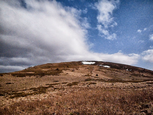 Na szczytach jeszcze leżał śnieg, zeszłoroczna trawa – wiosna powoli dociera do Bieszczadów