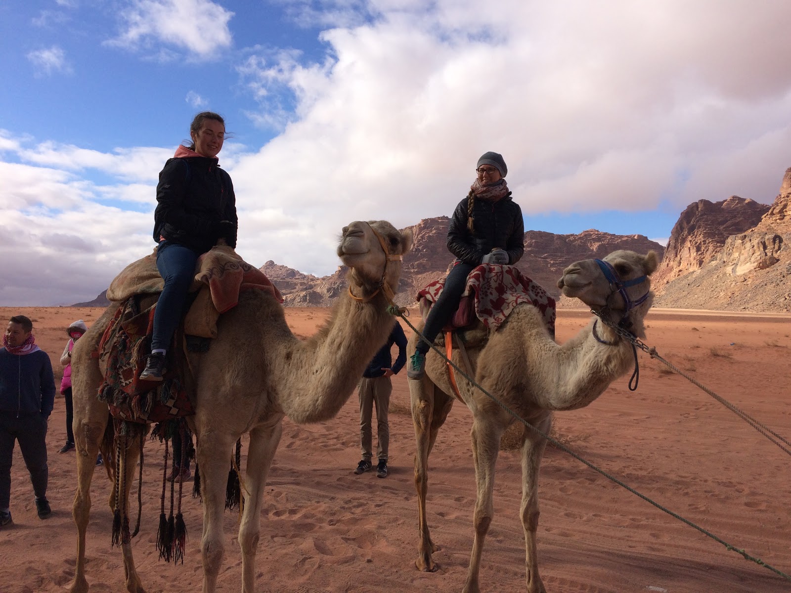 Tam za horyzontem jest wioska Wadi Rum, gdzie kończy się nasza przejażdżka. Kiedy wielbłąd siada na ziemię, mam odczucie strachu. To dzieje się tak szybko!