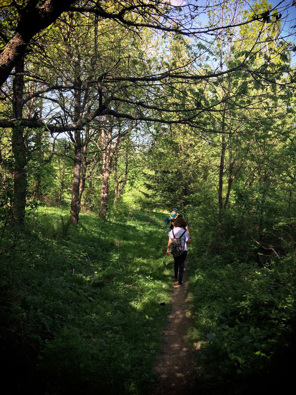 Znajomi rodziców: Boguś i Weronika zaplanowali na weekend majowy wycieczkę w góry. Mieszkają w Dukli, koło nich wznoszą się dwie góry: Cergowa (716 m n.p.m.) i Chyrowa (695 m). Rodzice zdecydowali się wyruszyć, Ronja też, a także znajoma rodzina spod Gorlic. Trasa tam i z powrotem wyniosła 12 km. Nie było bardzo męczącej wspinaczki, szliśmy przez piękne tereny leśne, były przystanki na polankach. Pogoda dopisała, wiał przyjemny wiatr i bardzo dobrze się maszerowało 🙂