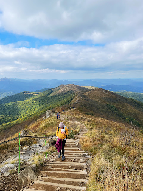 Wyrwałyśmy się z siostrą i małą siostrzenicą na koniec września w Bieszczady, na szlak, którym jeszcze nie chodziłyśmy: z Mucznego na Bukowe Berdo. Do Mucznego wspinałyśmy się powoli samochodem w górę. Sama osada niewielka, zaledwie 30 osób, krótka, ale burzliwa też jej historia, jak to bywa na terenach pogranicza (więcej można poczytać tutaj).