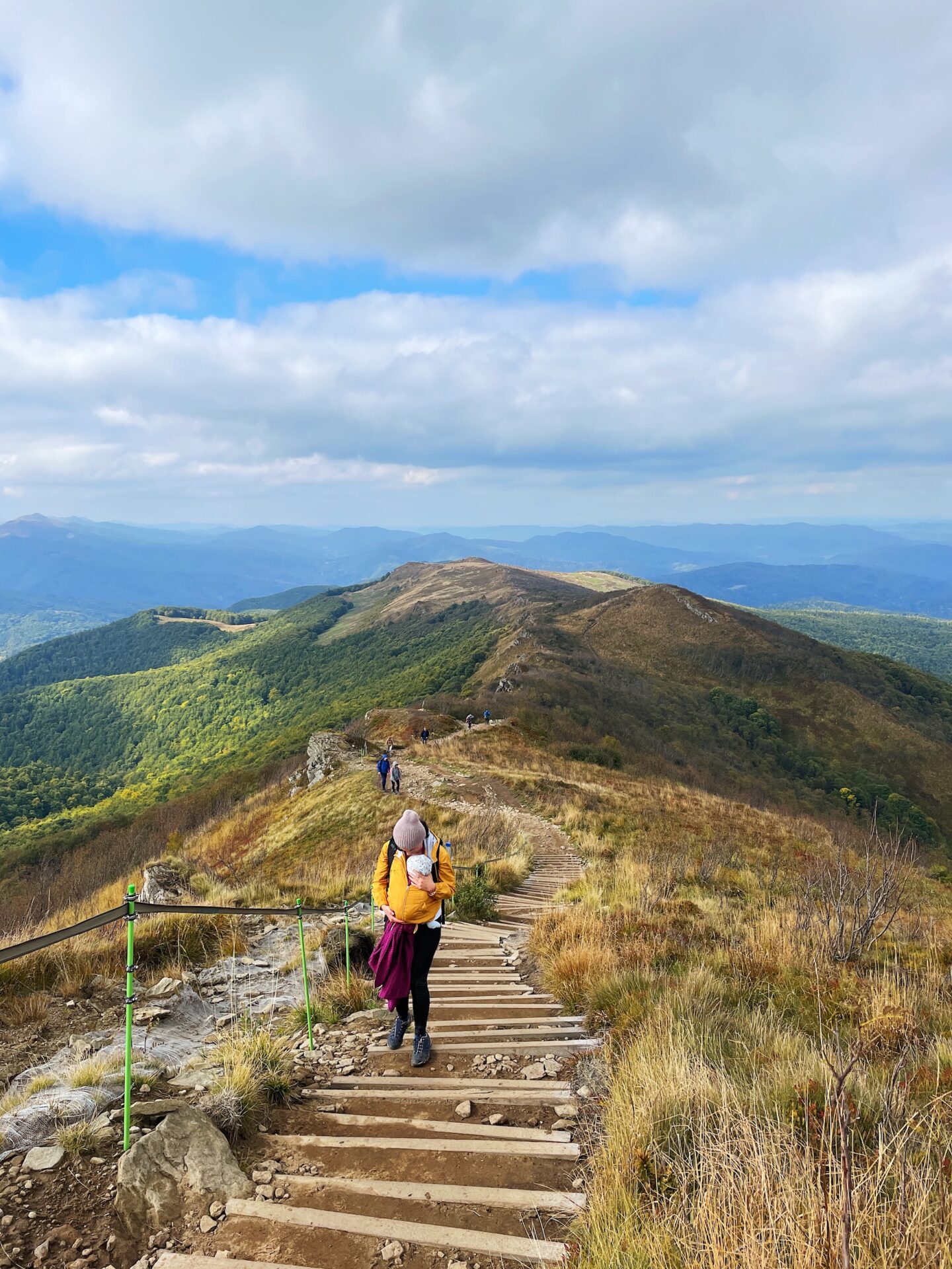 Ola wędrująca z dzieckiem w chuście napotykała co krok na komentarze turystów: przeważnie życzliwe, chociaż trafił się jeden oburzony pan, który nie bezpośrednio dał jej do zrozumienia: co ty tu robisz z dzieckiem? Wbrew obawom bieszczadzkie szlaki są bezpieczne i dziecko w chuście zwiedza bez większego wysiłku 😉