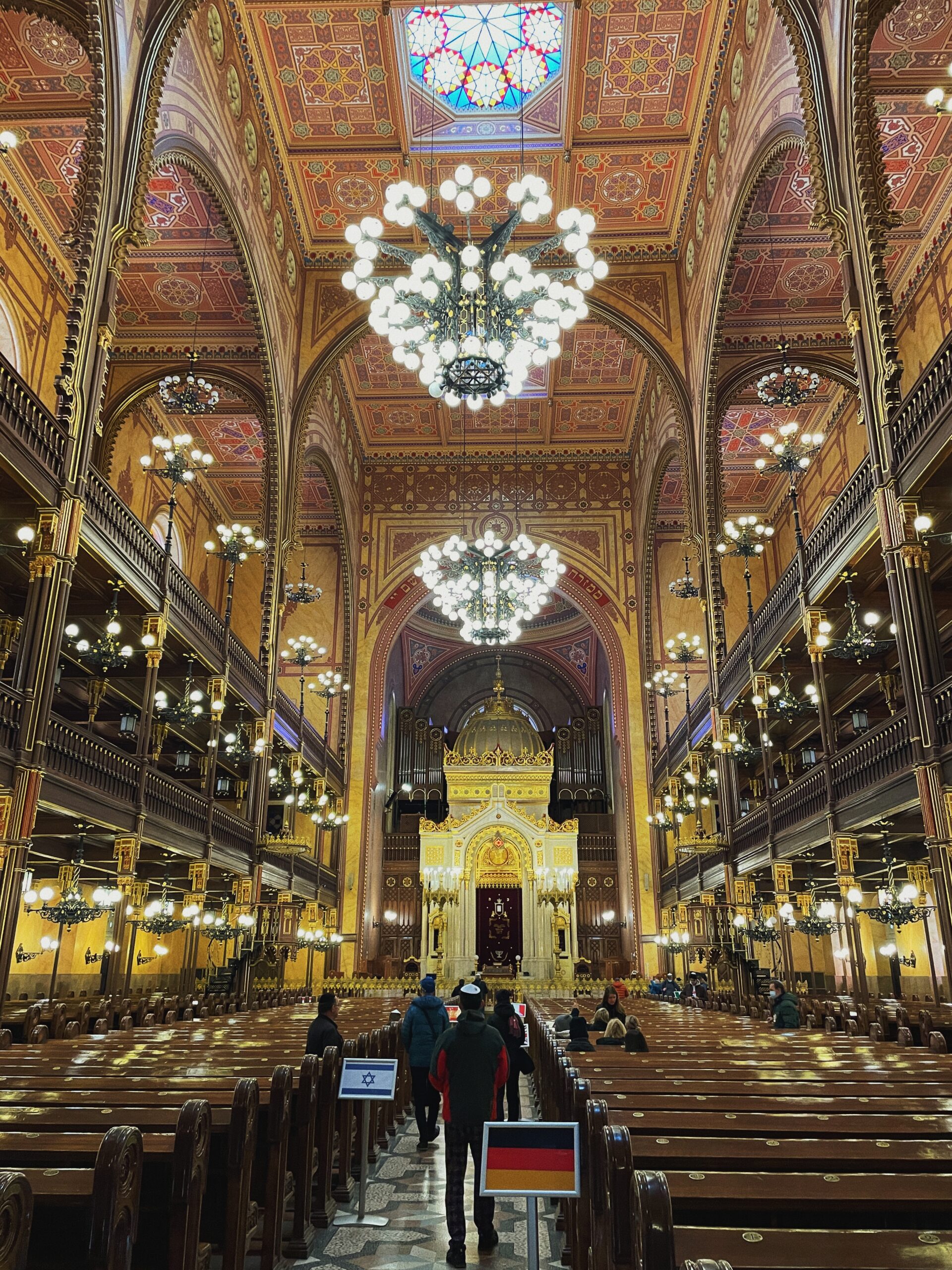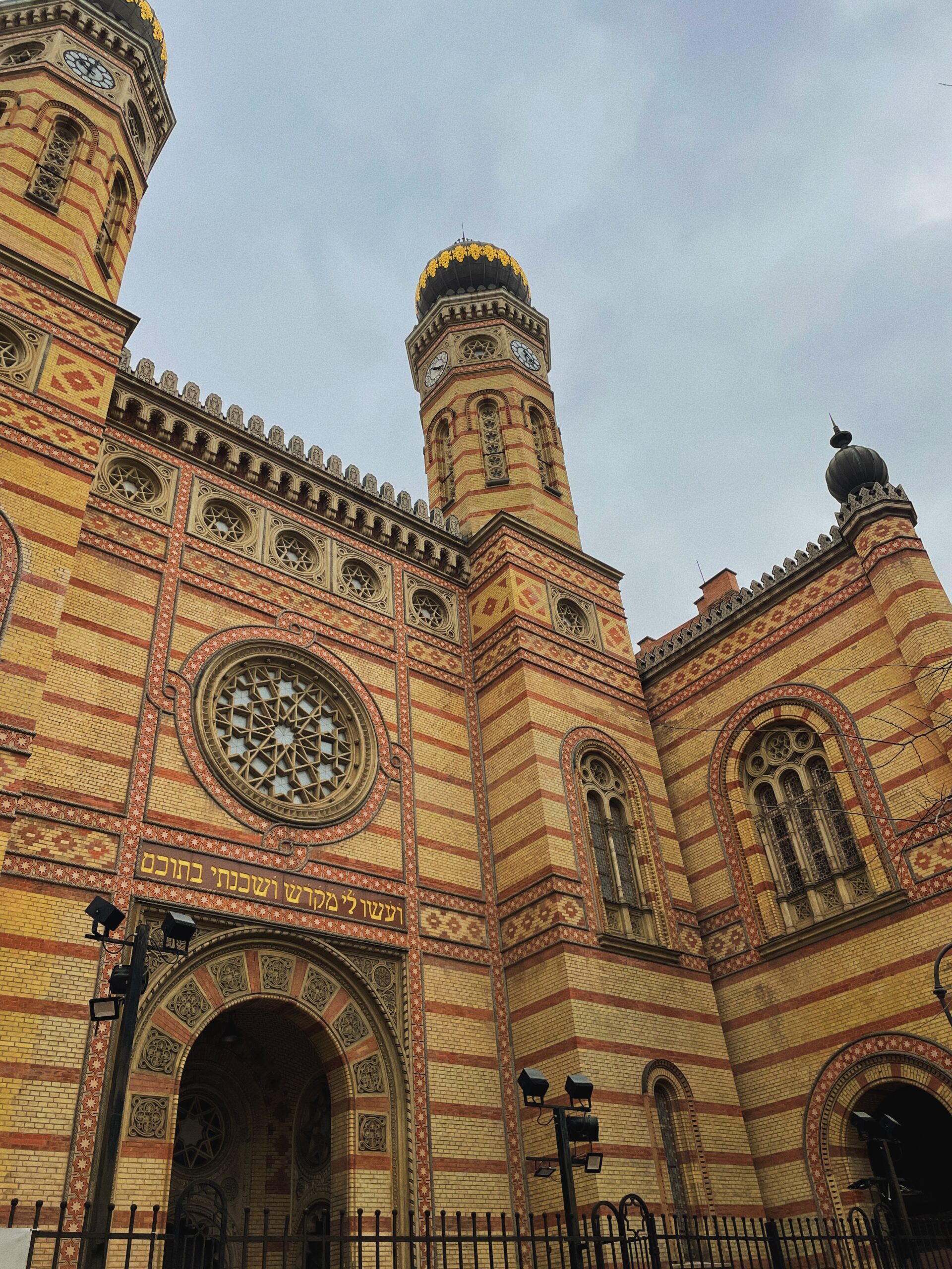 Przed nami wyłania się Wielka Synagoga. Jest to największa w Europie czynna synagoga (i druga największa na świecie). Za projekt odpowiadał austriacki architekt Ludwig Förster, projektant m.in. obwodnicy (Ring) Wiednia. Historię synagogi, losy Żydów na terenie getta opowiada przewodnik. Do dyspozycji odwiedzających jest kilka grup językowych.
