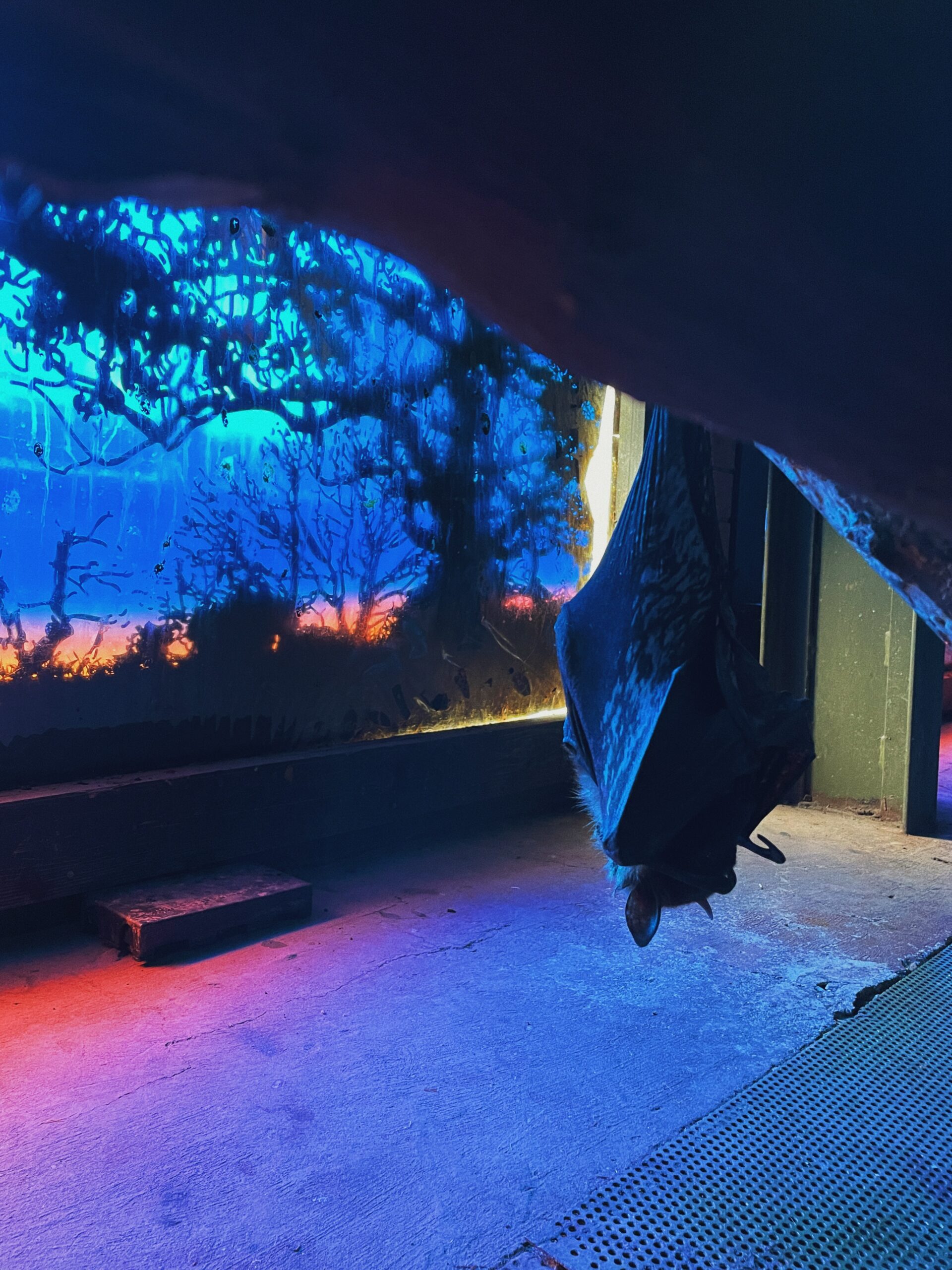Papugarnia to nudy. Tutaj jest sala z nietoperzami, które fruwają swobodnie