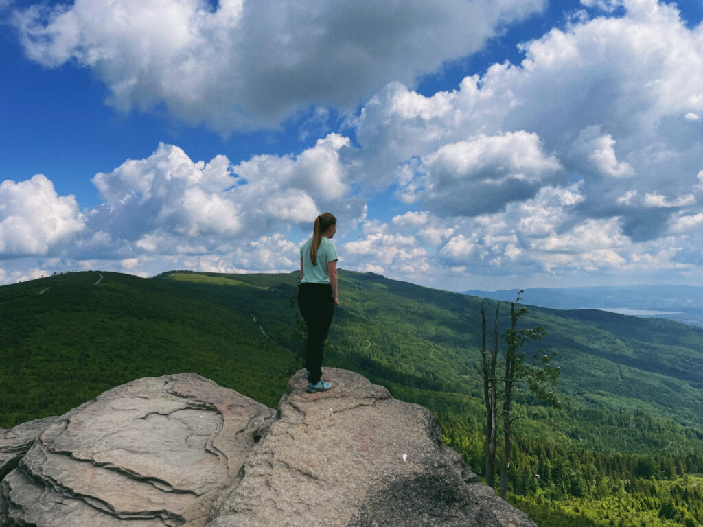 Spędziłam miniony dłuższy weekend w Beskidzie Śląskim, więc nie mogłam odpuścić zdobycia najwyższego szczytu. Na Skrzyczne weszłam widokowym szlakiem z Białego Krzyża przez Malinowską Skałę i Małe Skrzyczne. Dosyć łagodne podejścia i niewielkie przewyższenie uprzyjemniały 8-kilometrową wędrówkę w pełnym słońcu. Na koniec zjechałam razem z rodziną kolejką linową do Szczyrku, co podniosło ciśnienie mocniej, niż wspinaczka 😉