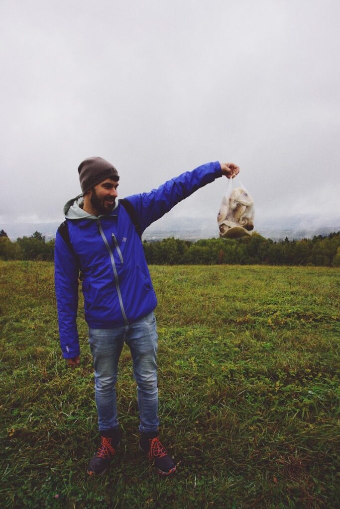 Pojechaliśmy do Poraża, żeby wejść na Góry, nazywane inaczej Kąty – niewielkie wzniesienie zaliczane do Korony Ziemi Sanockiej. Przy dobrej widoczności można podziwiać panoramę Sanoka, Zagórza i wiosek na południe od Poraża, ale tym razem przeszkodziła nam mgła. Na pocieszenie zebraliśmy woreczek kani.